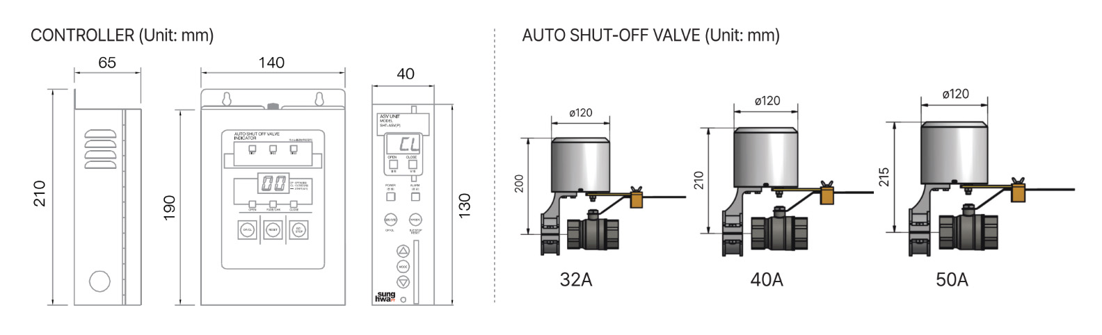 Model No. | GAS AUTO SHUT-OFF VALVE & CONTROLLER (32A, 40A, 50A) 32A,40A,50A |