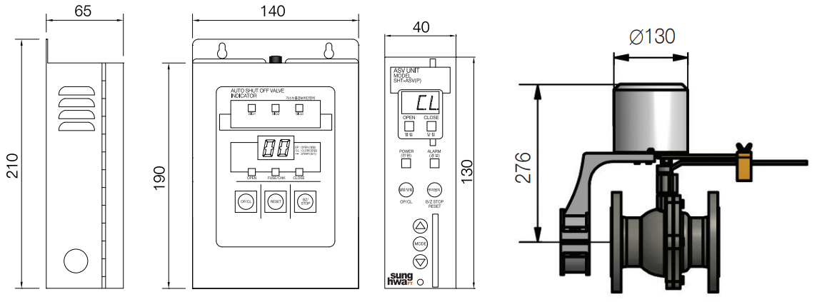 모델명 가스누출경보차단장치(50AF, 65A) Model, SHT-50AF, 65A